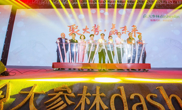 YP街机电子药业集团董事长刘景萍女士与大参林医药集团董事长柯云峰先生、中国医药商业协会执行会长付明仲女士等嘉宾共同开启了“聚大势•赢未来"大参林工商合作峰会的大幕。